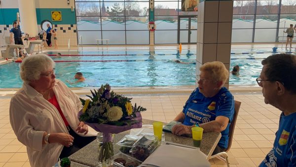 Die Präsidentin des Landesschwimmverbandes Sachsen-Anhalt, Frau Edda Kaminski, ist für die Auszeichnung persönlich nach Aschersleben gekommen. Neben den gerahmten Auszeichnungen und einem Blumenstrauß hatte sie auch viele lobende Worte für die beiden mitgebracht. Sonja und Kalle haben in über 5 Jahrzehnten nicht nur zwei Genrationen das Schwimmen beigebracht sondern haben den Schwimmsport in Aschersleben maßgebend geprägt und auch über schwierige Zeiten hinweg stets aufrecht erhalten.