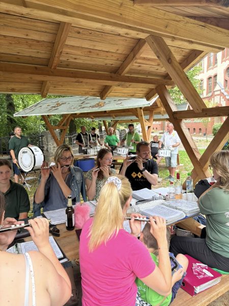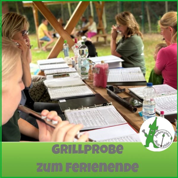 Unsere Sommerpause endet traditionell mit einer ganz besonderen Probe: Wir treffen uns im Freien, packen unsere Instrumente aus und spielen gemeinsam unter blauem Himmel – begleitet vom Duft frisch gegrillter Würste. Jeder bringt etwas Leckeres mit, es wird musiziert, gelacht und gequatscht. Diese liebgewonnene Tradition ist für uns der ideale Start in die zweite Jahreshälfte und ein schöner Abschluss der Sommerferien. ☀️🥳