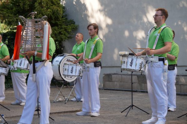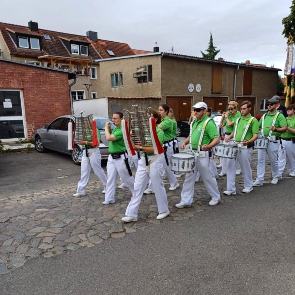 🥁 Der Umzug setzte sich anschließend in Bewegung, bis wir am Zielort, dem Festplatz am Schützenhaus ankamen. Dort haben wir noch ein paar Titel im Stand gespielt und anschließend noch gemeinsam den Vormittag ausklingen lassen. 🥁🍽️
